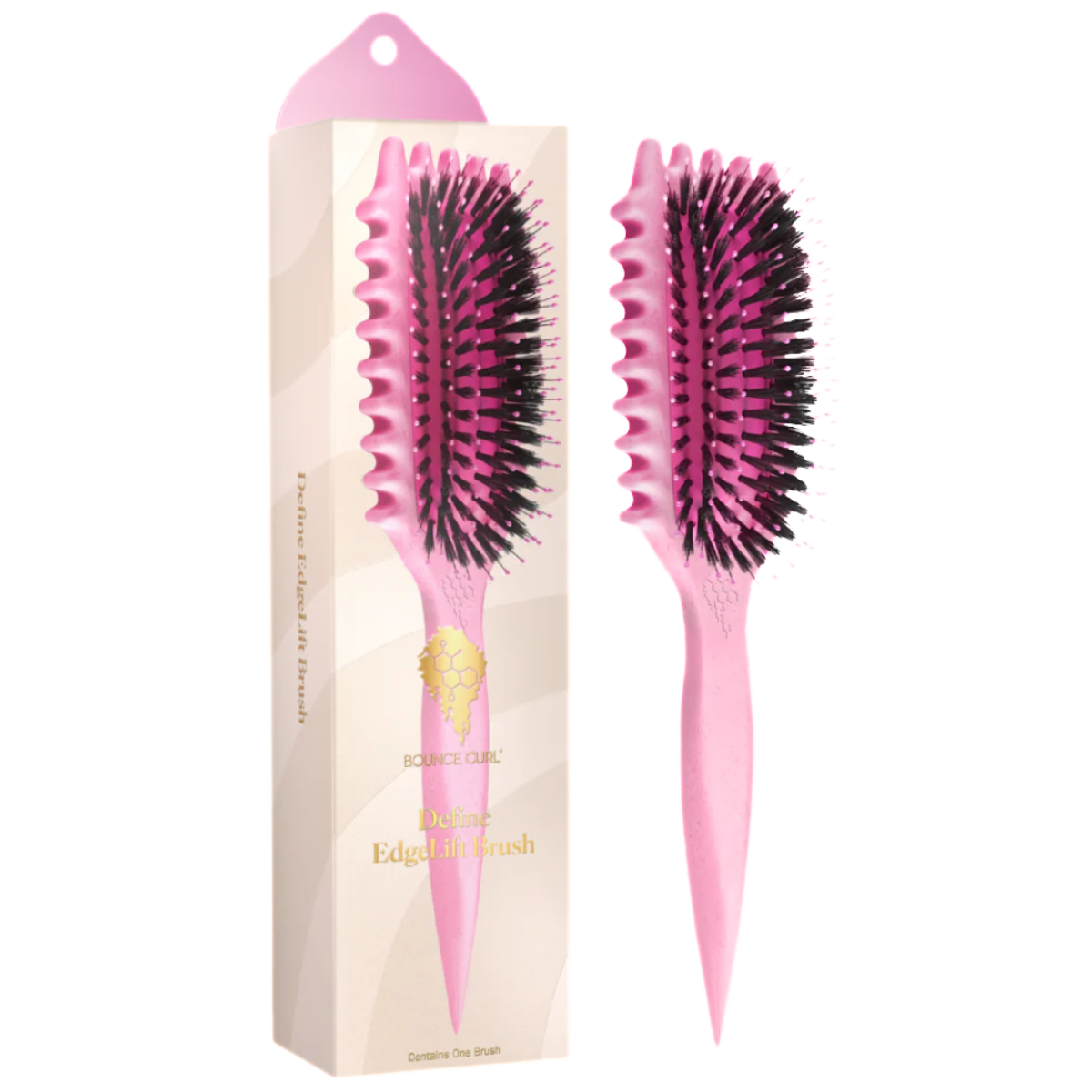 Introducing Bounce Curl’s custom, patented Define EdgeLift Brush, a viral sensation that has sold out globally due to its incredible ability to define waves, curls, and coils. This 5-in-1 brush features medium-spaced edges & flexible bristles that create smooth, defined curls.