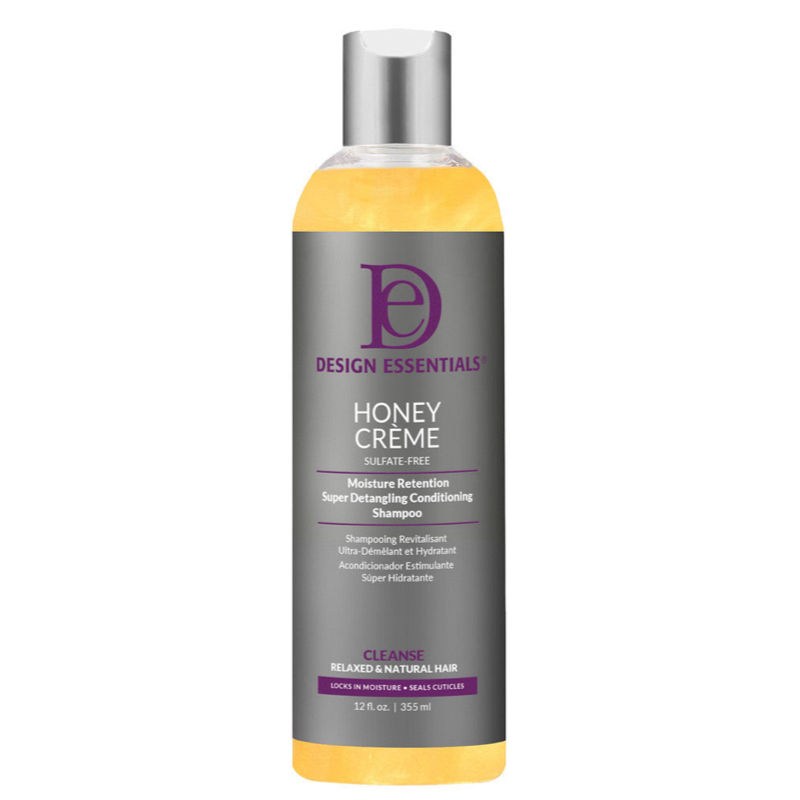 Cleanse and moisturize. At. The. Same. Time. Our Design Essentials® Honey Crème Moisture Retention Super Detangling Conditioning Shampoo is a moisture-preserving, quick-lather detangling shampoo. It cleanses and restores moisture, leaving hair extremely soft, manageable, and beautifully hydrated.